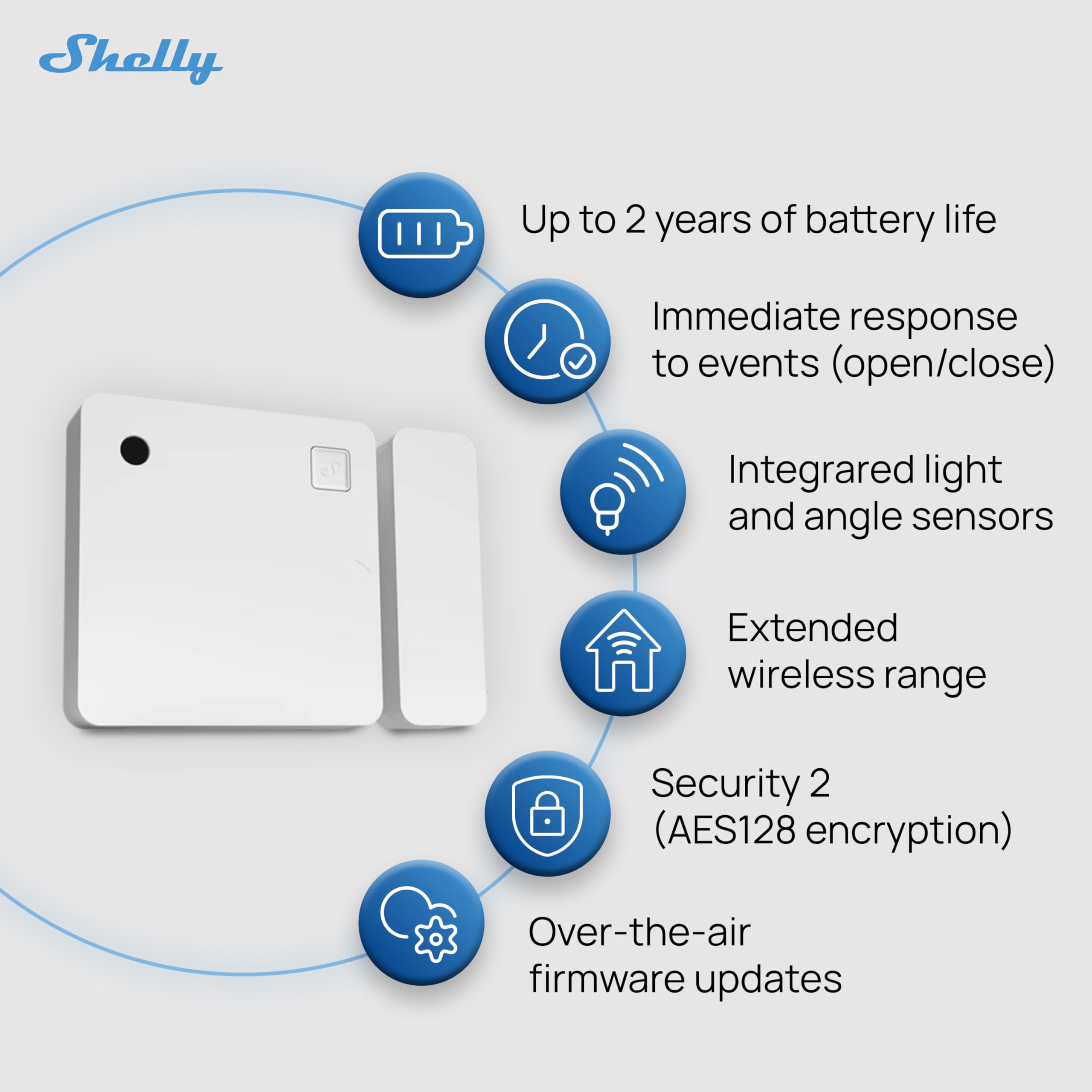 Shelly Wave Door/Window White, Z-Wave Long Range Operated Sensor, Home Automation, Compatible with Alexa, Google Home, SmartThings & Home Assistant, Bulletproof Security, Lux & Tilt Angle Measurement